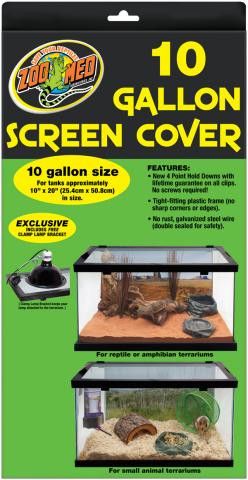 Zoo Meds Screen Covers feature one piece plastic frame construction that clips on tight to prevent loss of valuable pets. Some models have access doors for easy routine maintenance (i.e. feeding crickets, etc.) No rust galvanized steel wire, double sealed for safety. Exclusive NEW Clamp Lamp Bracket allows you to secure a clamp lamp to the top of your screen!