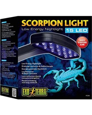The Exo Terra Scorpion Light adds a whole new dimension to keeping invertebrates. The Scorpion Light provides a soft ultraviolet light, similar to the UV-rays reflected by the moon’s surface.