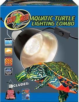 The Aquatic Turtle Lighting Combo pack provides a great basking spot for your Turtle's daytime hours.